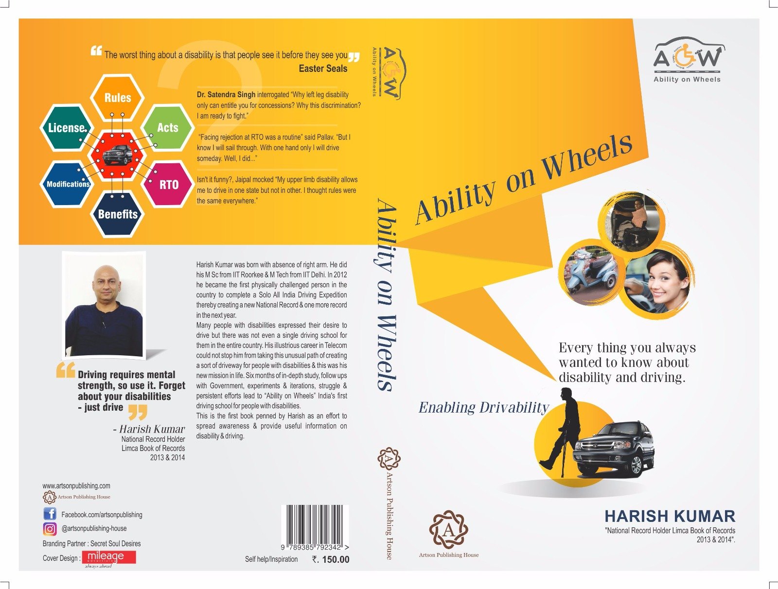 In coversation with the author of the book Mr Harish Kumar, initiator of an NGO Ability on Wheels Charitable Trust which provides mobility services & solutions to people with disabilities. (www.abilityonwheels.org), who wishes to introduce himself as a differently abled person with a passion for driving and he has owned 2 National Records in Limca Book of Records. You can know more about him on http://www.herexpertise.com/ability-on-wheels/